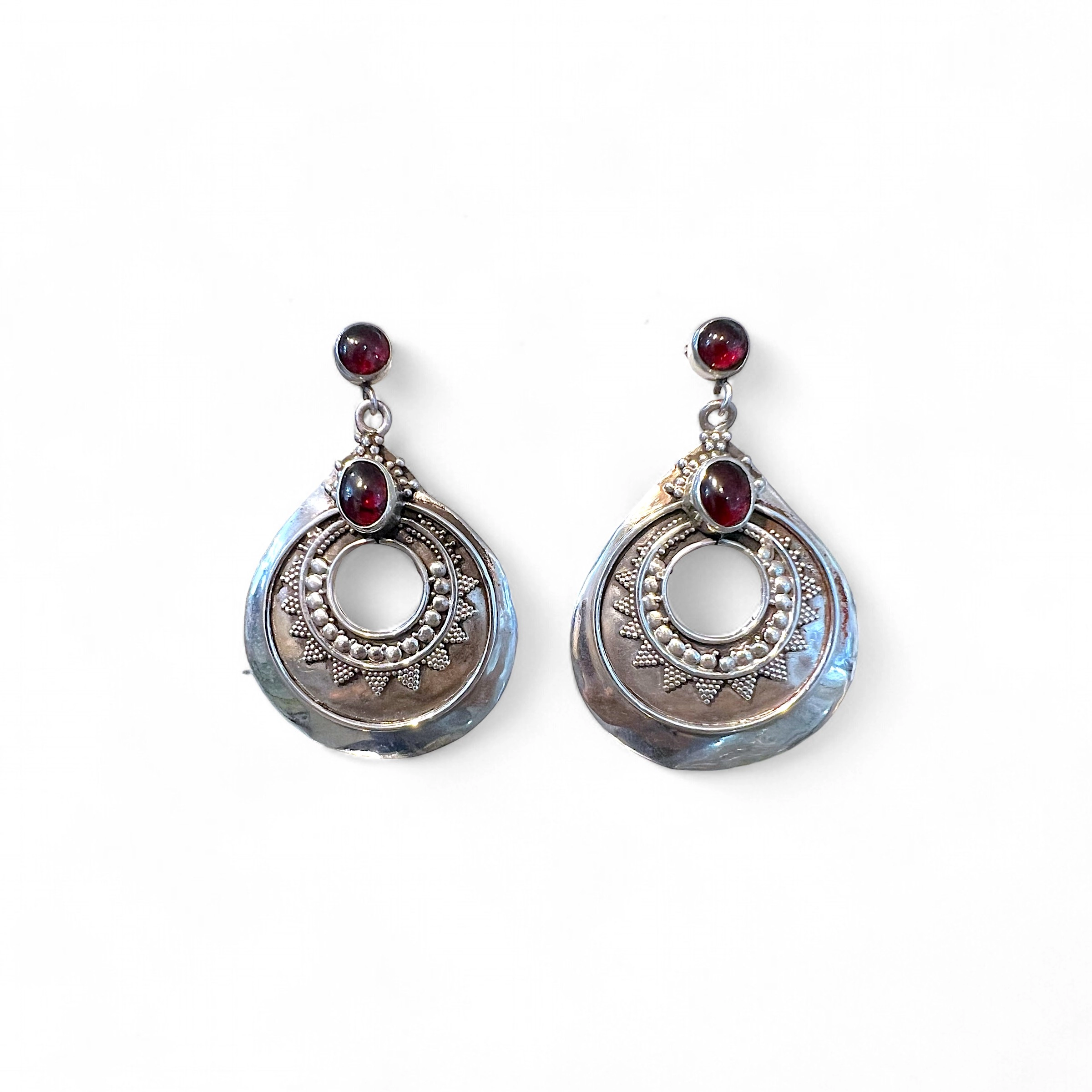 Lindo brinco em prata 925 trabalhada e granada.