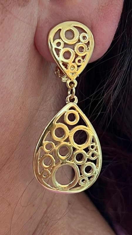 Brinco pressão banhado, comprido em dourada e dourado fosco
