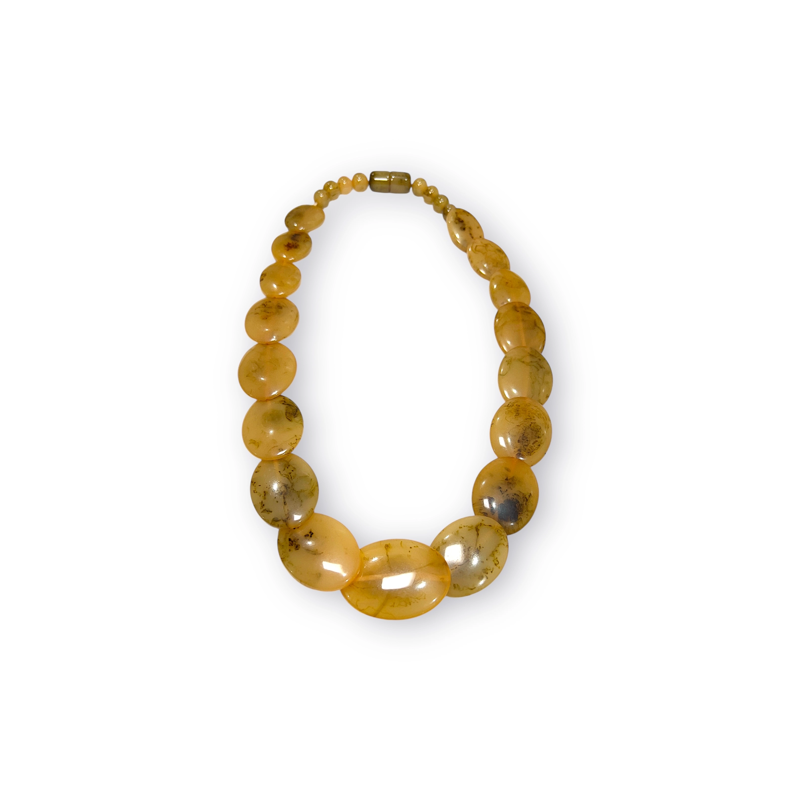 Colar pastilha oval em resina feita pelos tibetanos, com 60cm