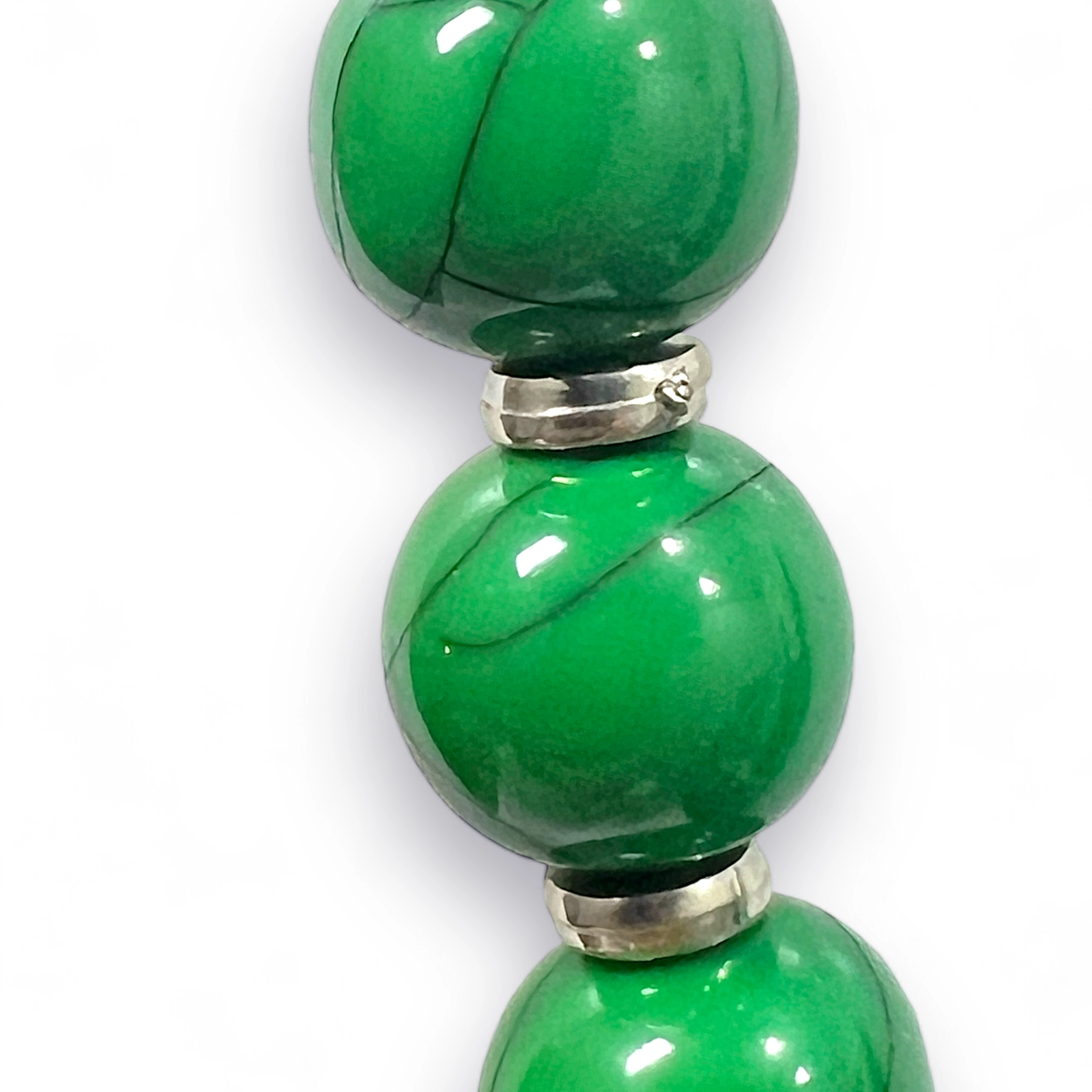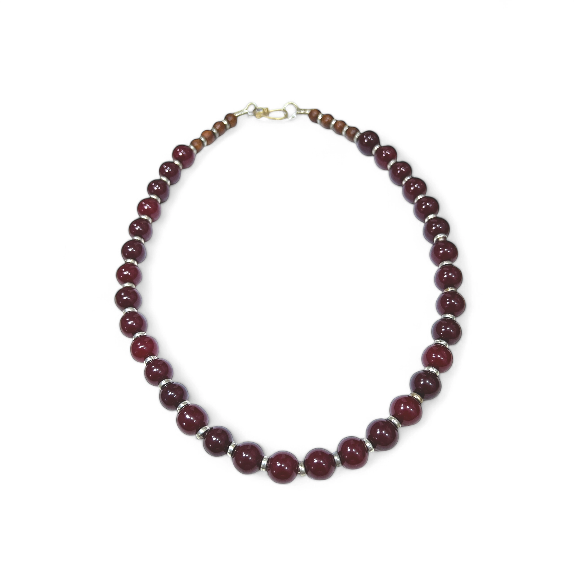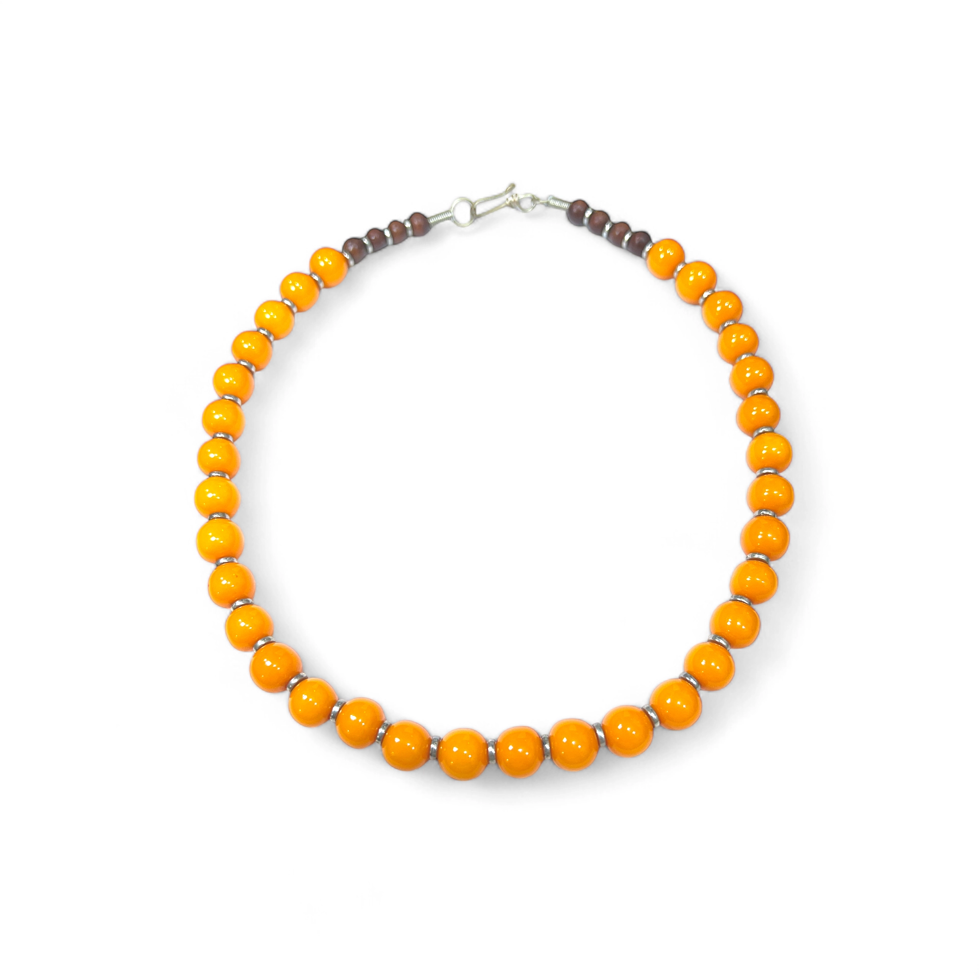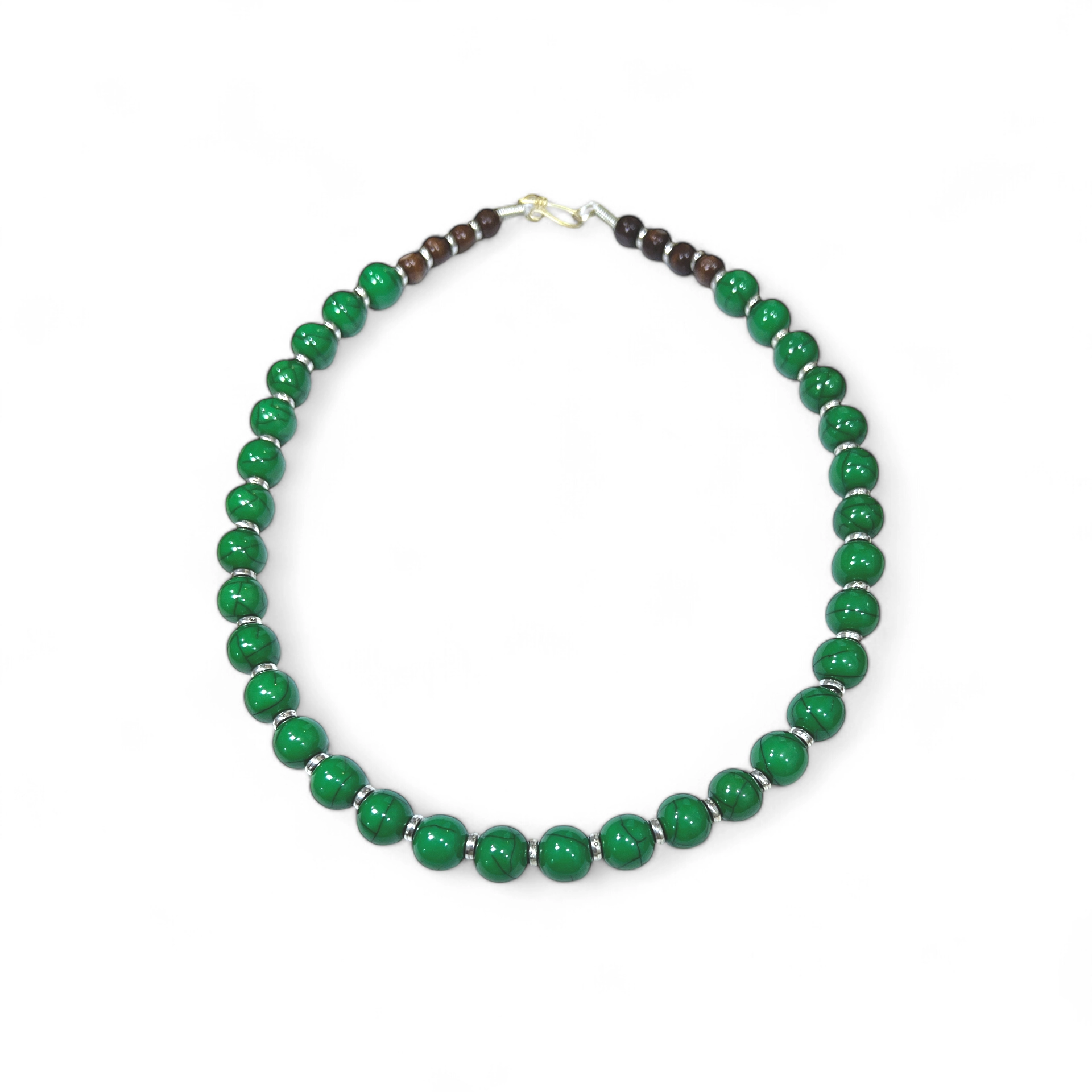 Colar de bolas em resina, com acabamento em madeira