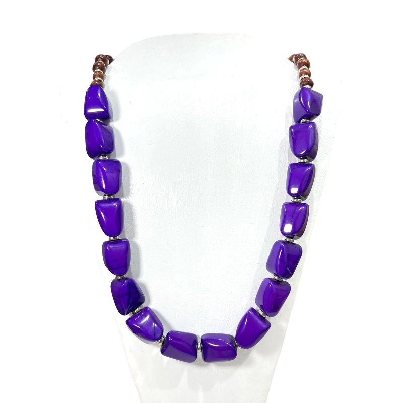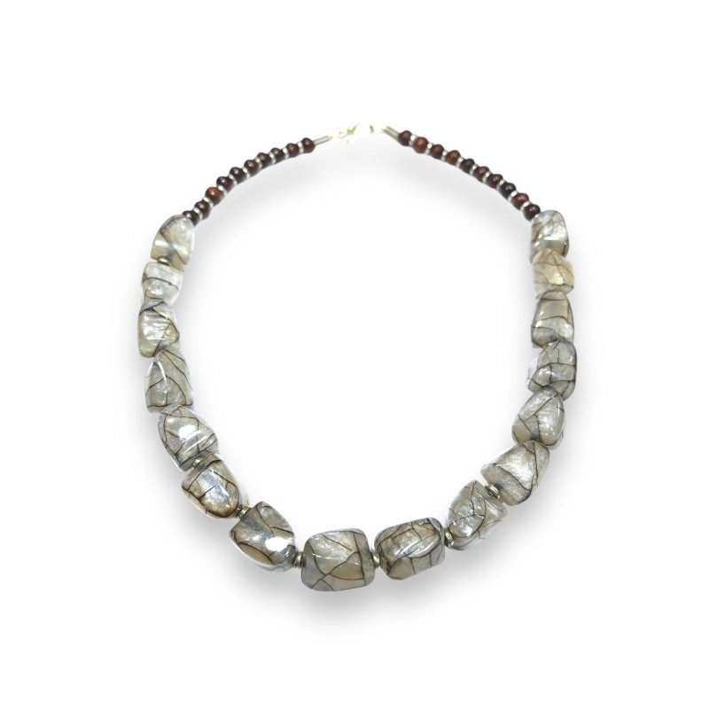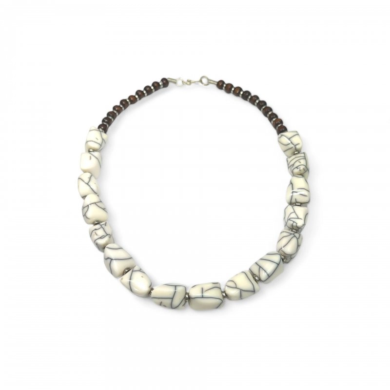 Colar Irregular em resina com acabamento em bolinhas de madeira