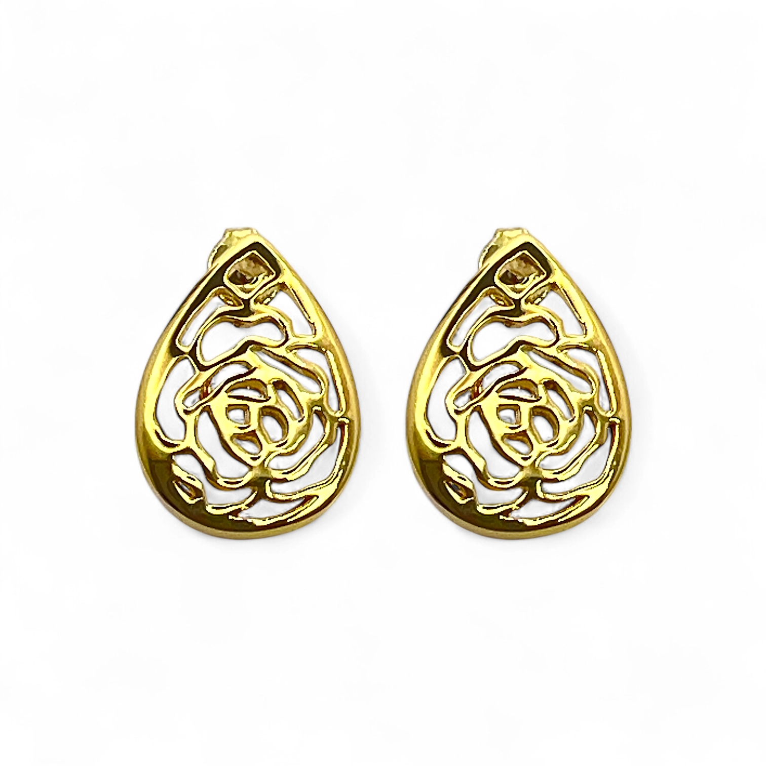 Brinco Gota vazada e trabalhada, para orelha furada.