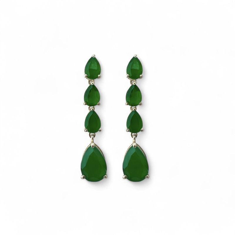 Brinco Quartz Verde Lapidado , em prata 925.