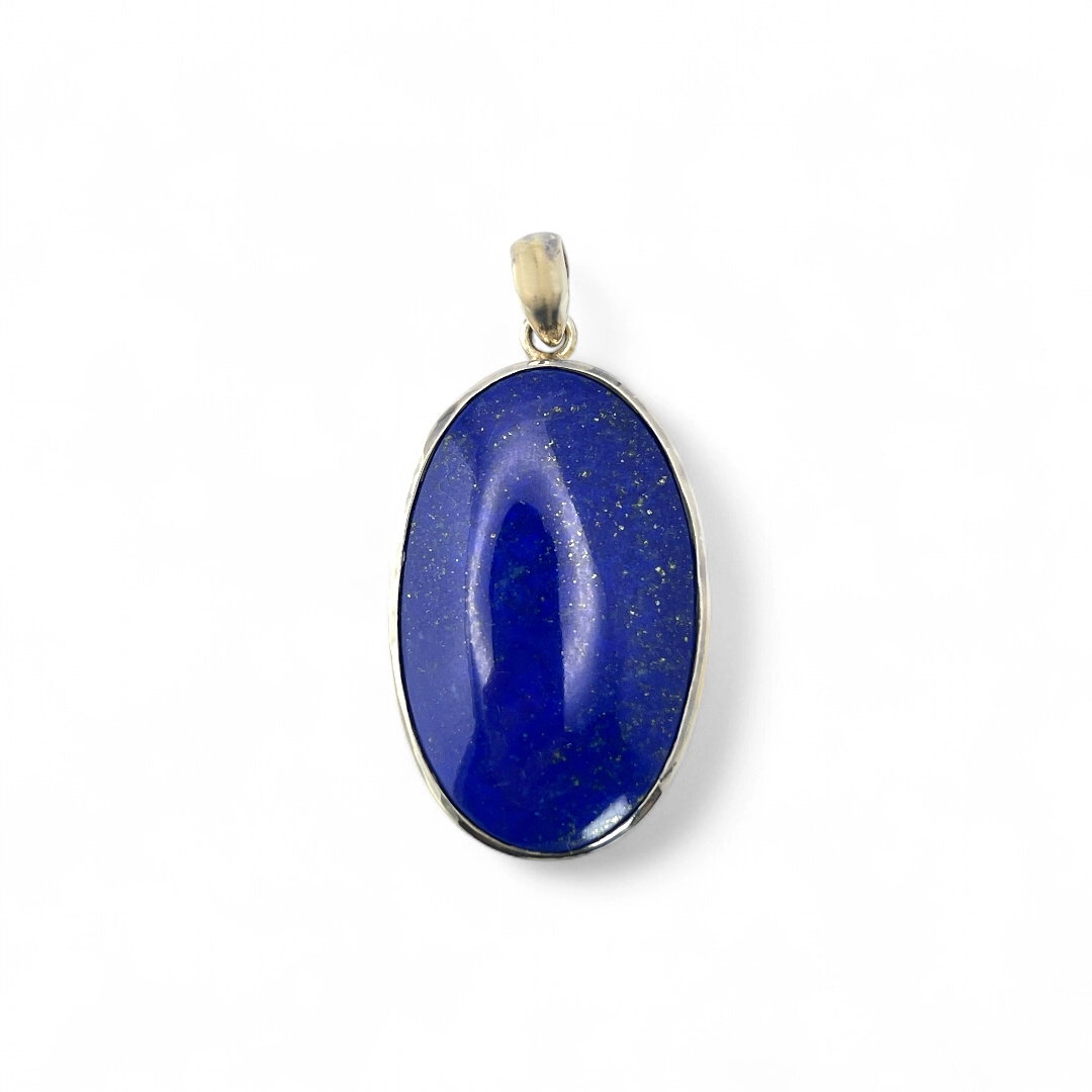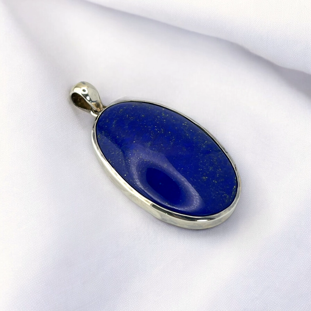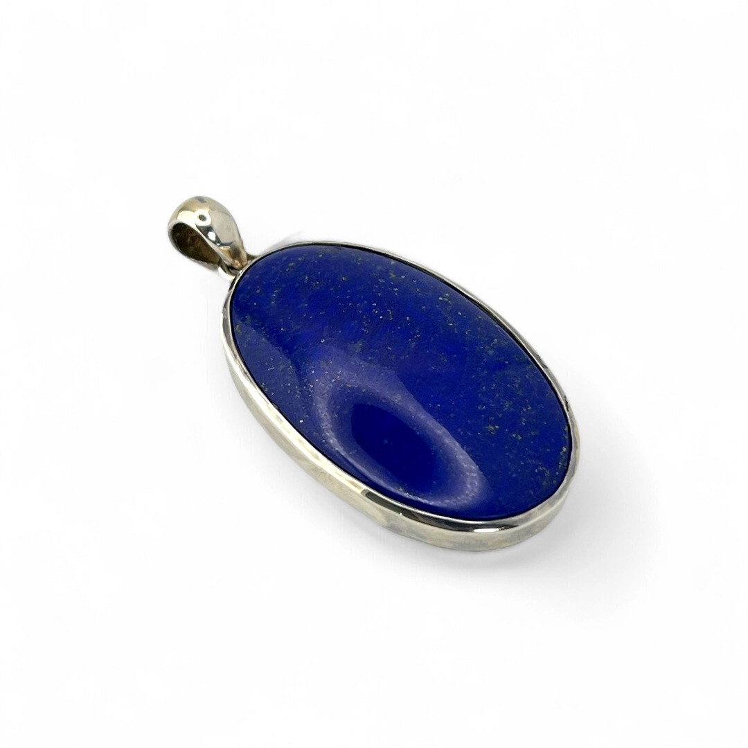 Pingente grande oval em prata 925, de Lápis Lazule natural
