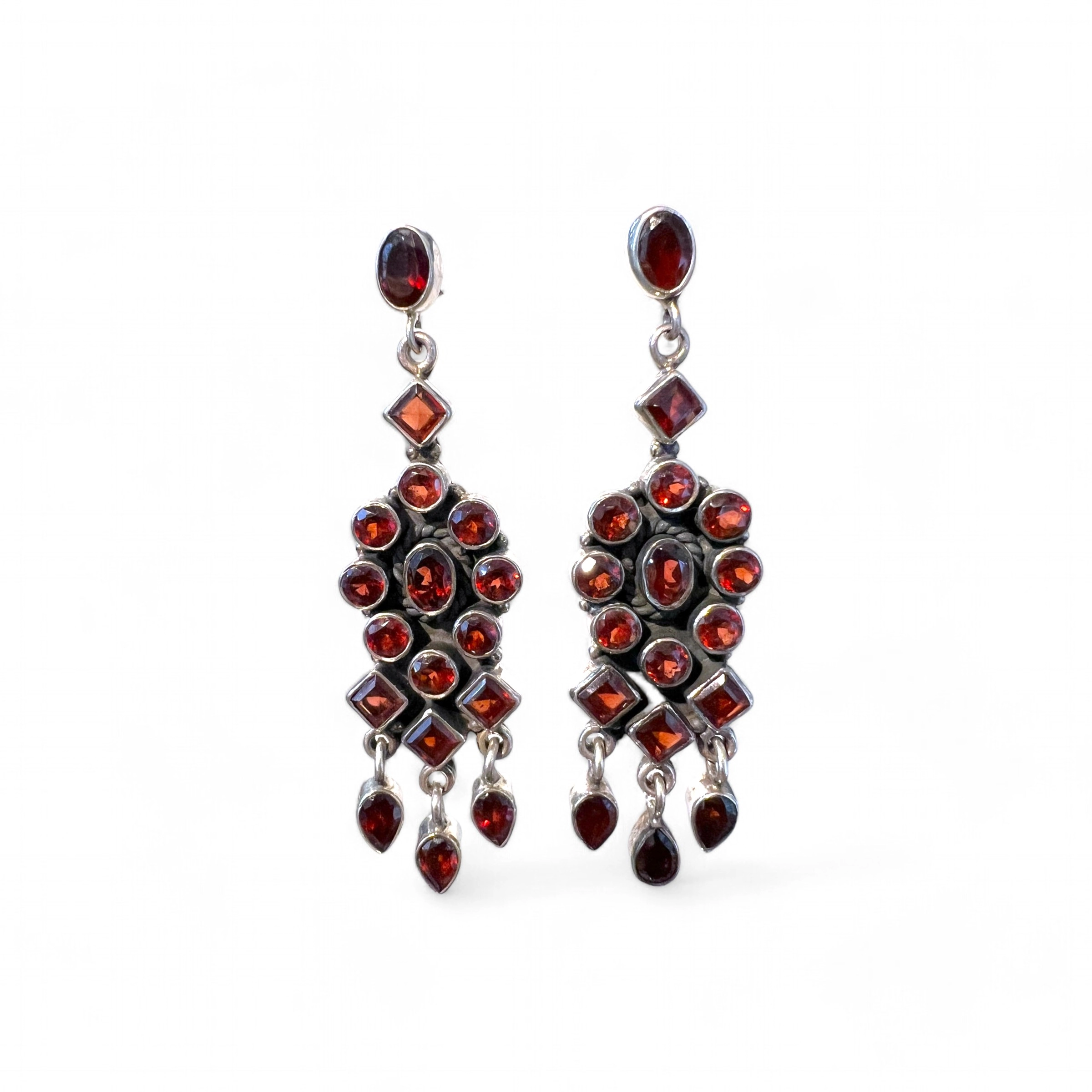 Brinco de Granada lapidado, prata 925.tamanho - 6cmx1.7cm na maior largura
