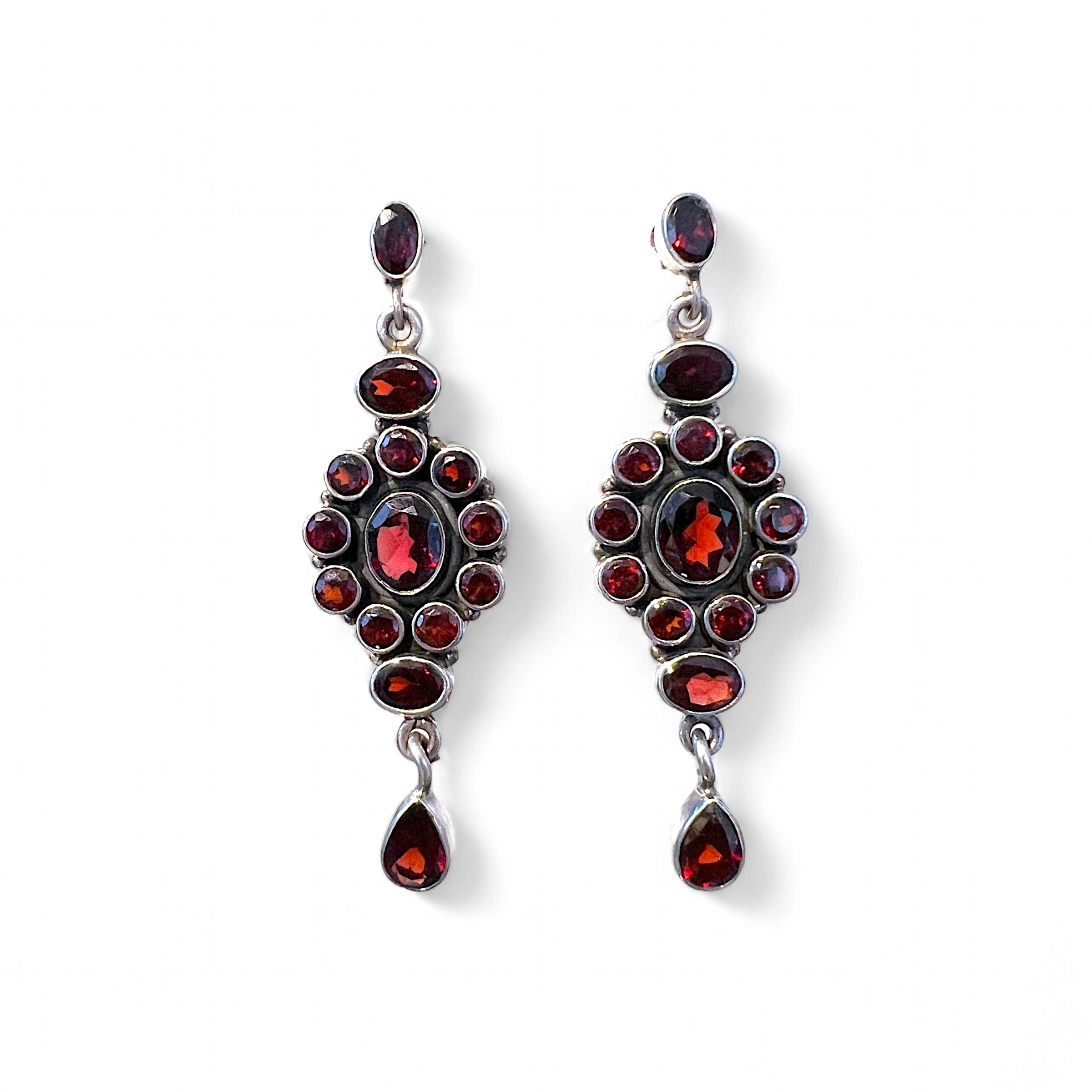 Lindo brinco longo de Granada lapidada e prata 925. 6cm x 2cm na maior largura