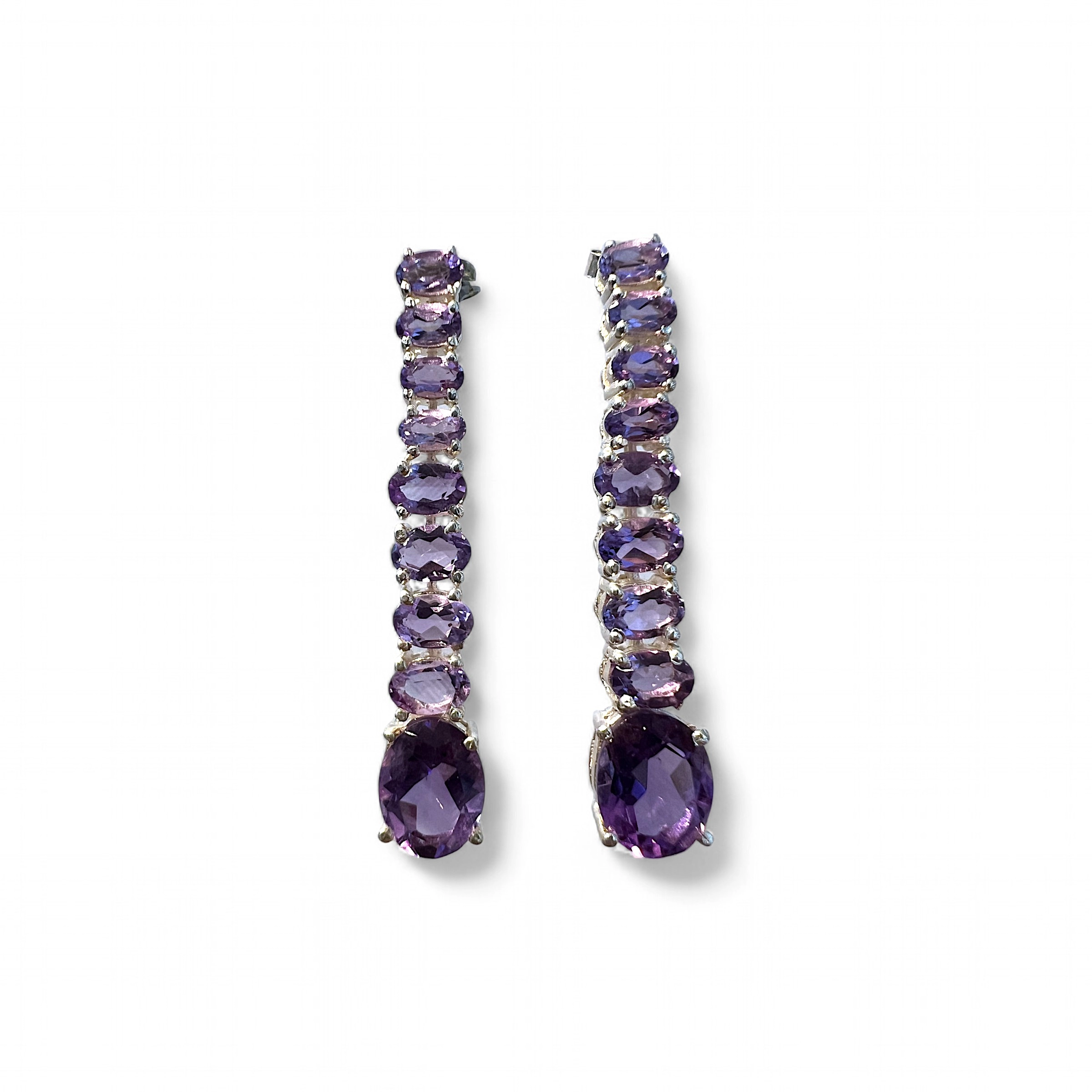 Brinco todo de ametistas ovais lapidadas em prata 925.