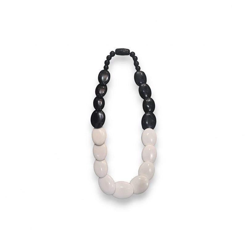 Colar preto e branco , placas ovais em resina feito pelos tibetanos.