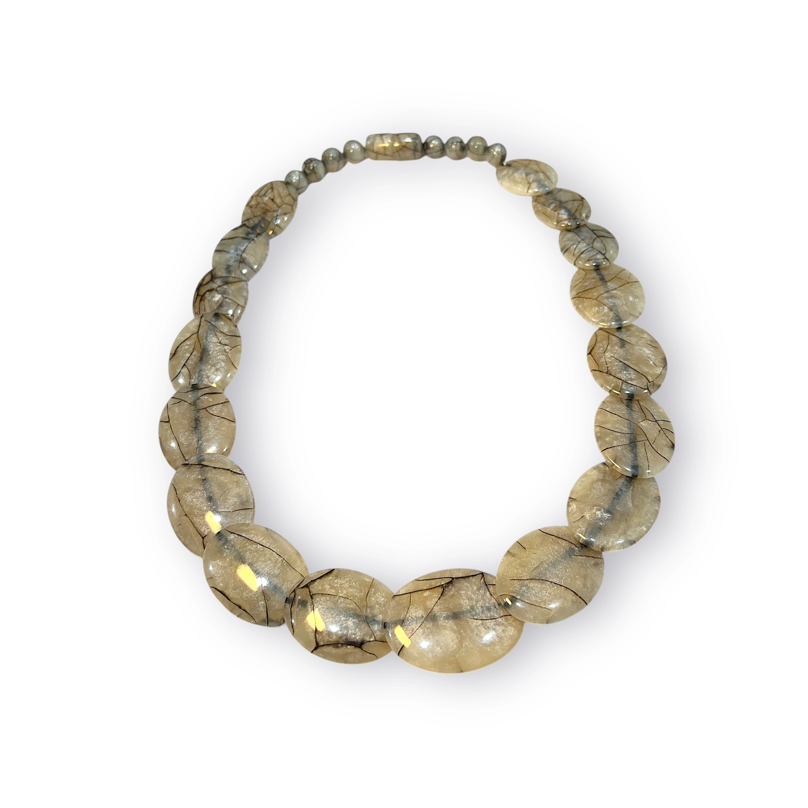Colar pastilha oval em resina feita pelos tibetanos, com 60cm