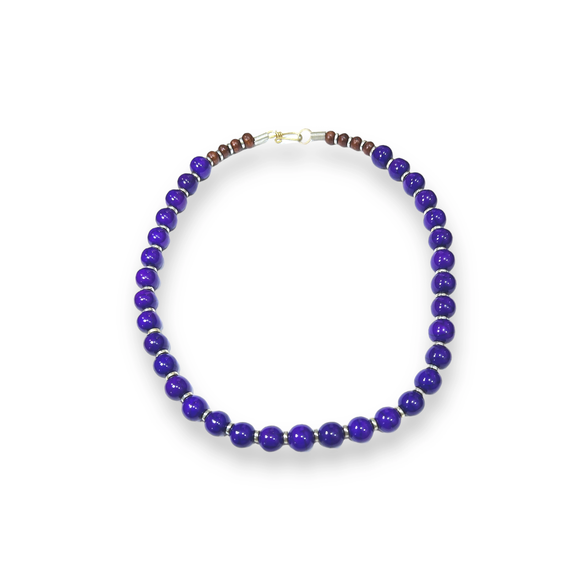Colar de bolas em resina, com acabamento em madeira
