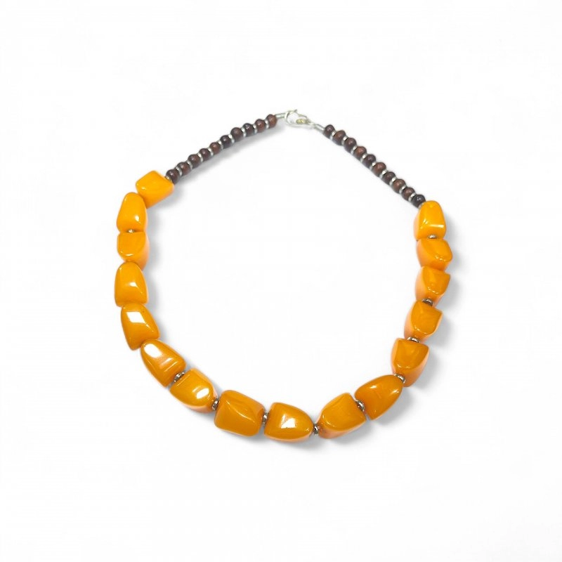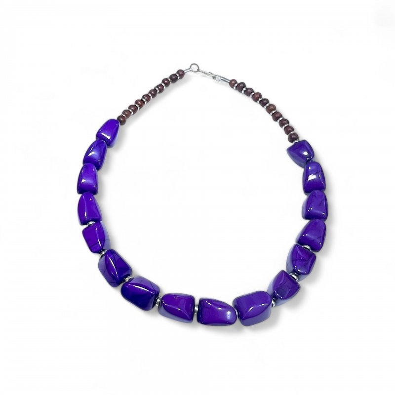 Colar Irregular em resina com acabamento em bolinhas de madeira