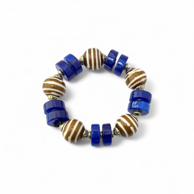 Voltar para a página inicial   >   Tibetanos   >   Pulseira em Resina Azul com Bege