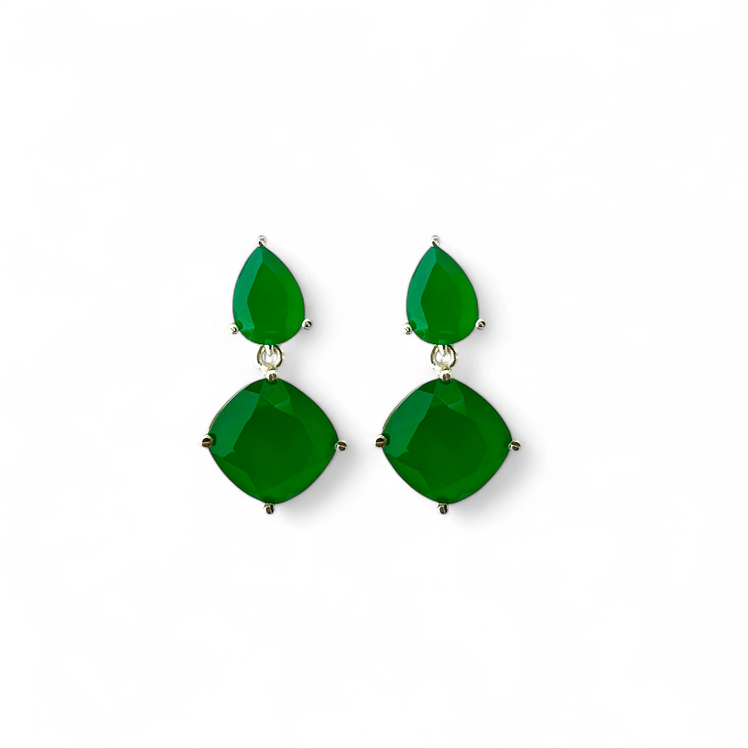Brinco quartz verde lapidado, em prata 925 3cm x1.5cm, na largura maior.